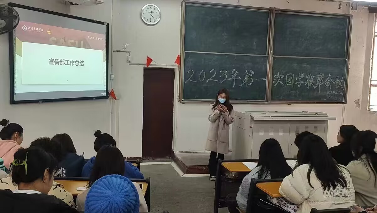 会议伊始,由各部门代表结合实际工作汇报上学期已完成的工作任务,规划下半月的工作任务,并就目前存在的问题提出解决方案。随后,主席团成员轮流总结上学期负责的工作,对新学期的工作任务做了详细的规划和安排,并就同学们提出的关于通知的问题做出了改进。