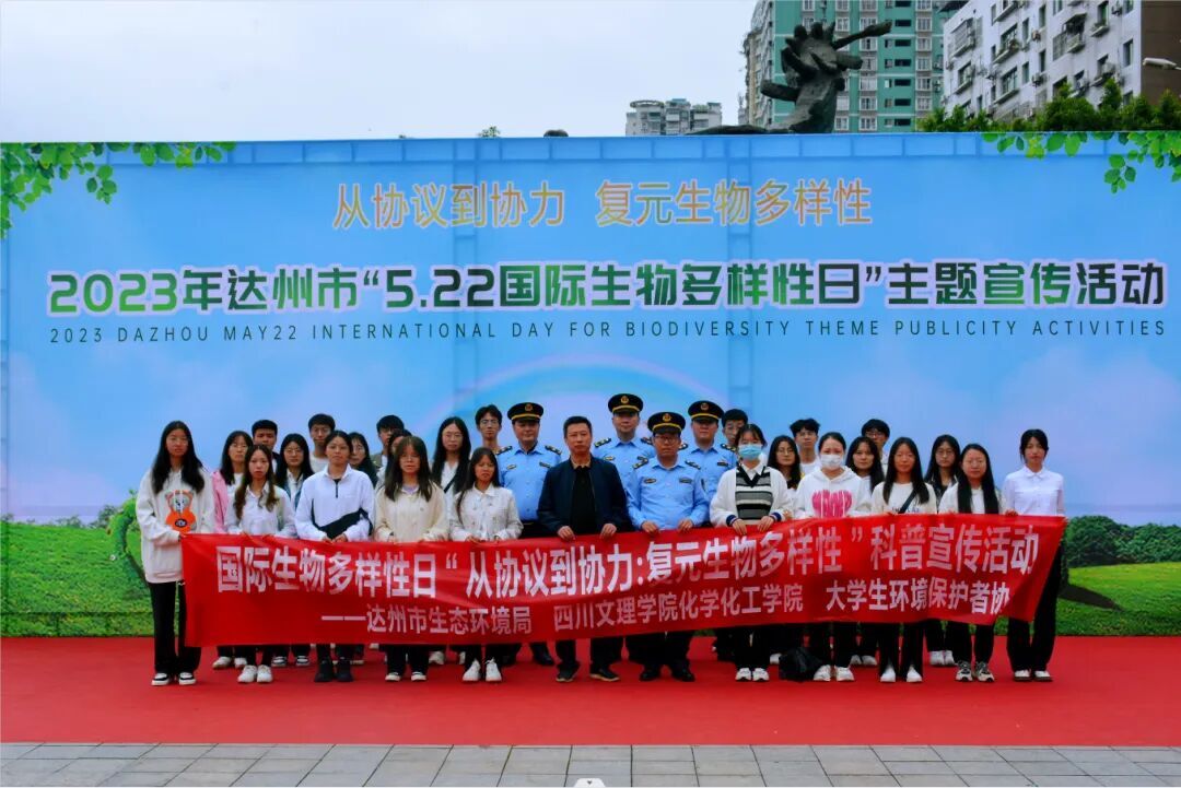 为宣传国际生物多样性日,让广大市民深入了解国际生物多样性日的相关知识,同时提高对保护生物多样性重要性的认识,2023年5月23日太阳成集团tyc122ccvip选派32名员工前往达州市仙鹤广场参加由市生态环境局、市公安局、市自然资源局、市水务局、市农业农村局、市林业局、达川生态环境局、qy太阳成集团tyc122ccvip联合举办的“5.22国际生物多样性日”主题宣传活动,旨在宣传环保意识、心系人类命运,共同保护生物多样性。活动由公司2021级周立阳同学主持。