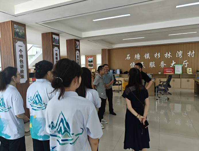 7月20日,乡村绿色治理团抵达石塘镇。次日,治理团在石塘镇镇长的带领下,走访了石塘镇杉林湾村的便民服务大厅。治理团成员们在此参观了石塘的特色农产品直播场地,并了解到了公司往届学子为杉林湾村建设所做的贡献。在走访过程中,镇长指出,“三下乡”实践活动的意义非凡,并期望同学们能沉下身子走进村镇,与乡亲们面对面、心贴心地交流,以年轻视角观察石塘,用所学知识感知石塘。