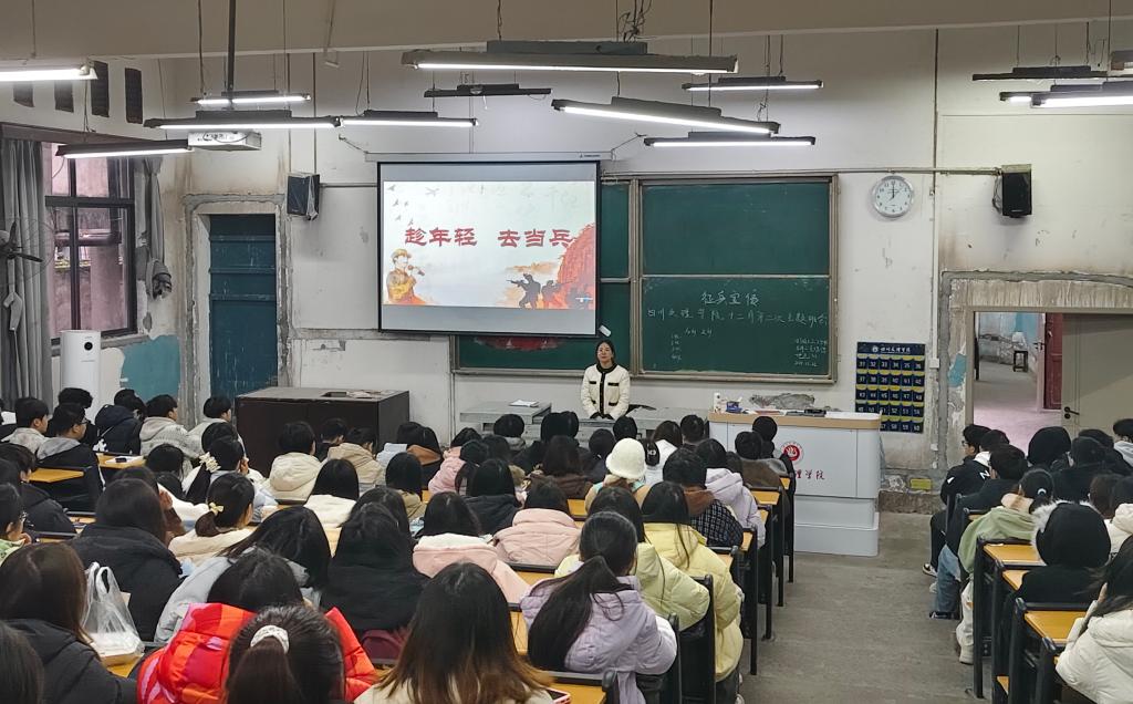 为深入贯彻落实征兵工作部署,激发广大青年参军报国的热情,增强同学们的国防意识和爱国情怀,2025年12月19日,太阳成集团tyc122ccvip组织各班级开展征兵宣传主题班会。