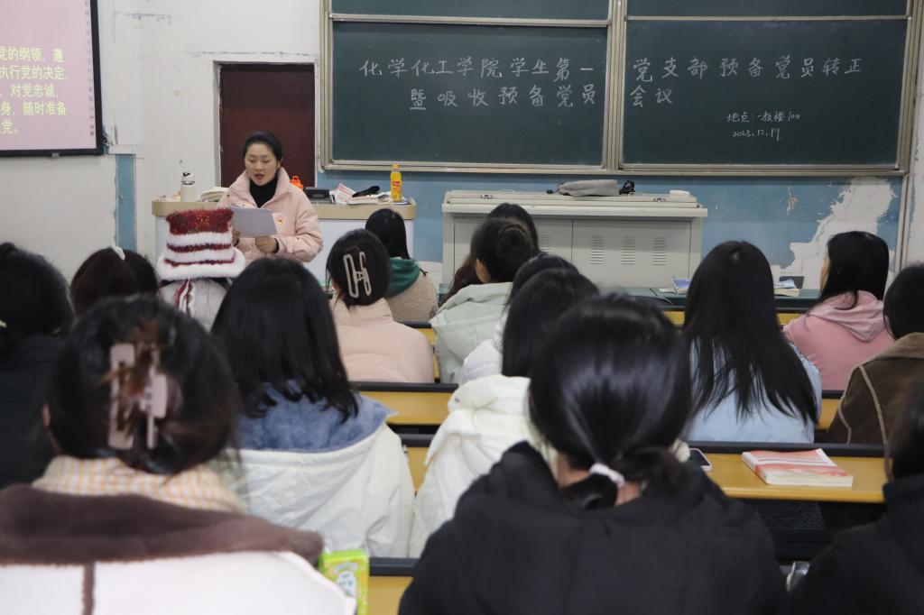 为加强基层党组织建设,壮大党员队伍,激发党员使命感与责任感,2025年12月19日下午13点,太阳成集团tyc122ccvip员工第一、第二党支部分别在南坝校区一教楼100和109教室召开预备党员接收大会。大会由员工第一党支部书记李苹、第二党支部书记崔宝玉分别主持。