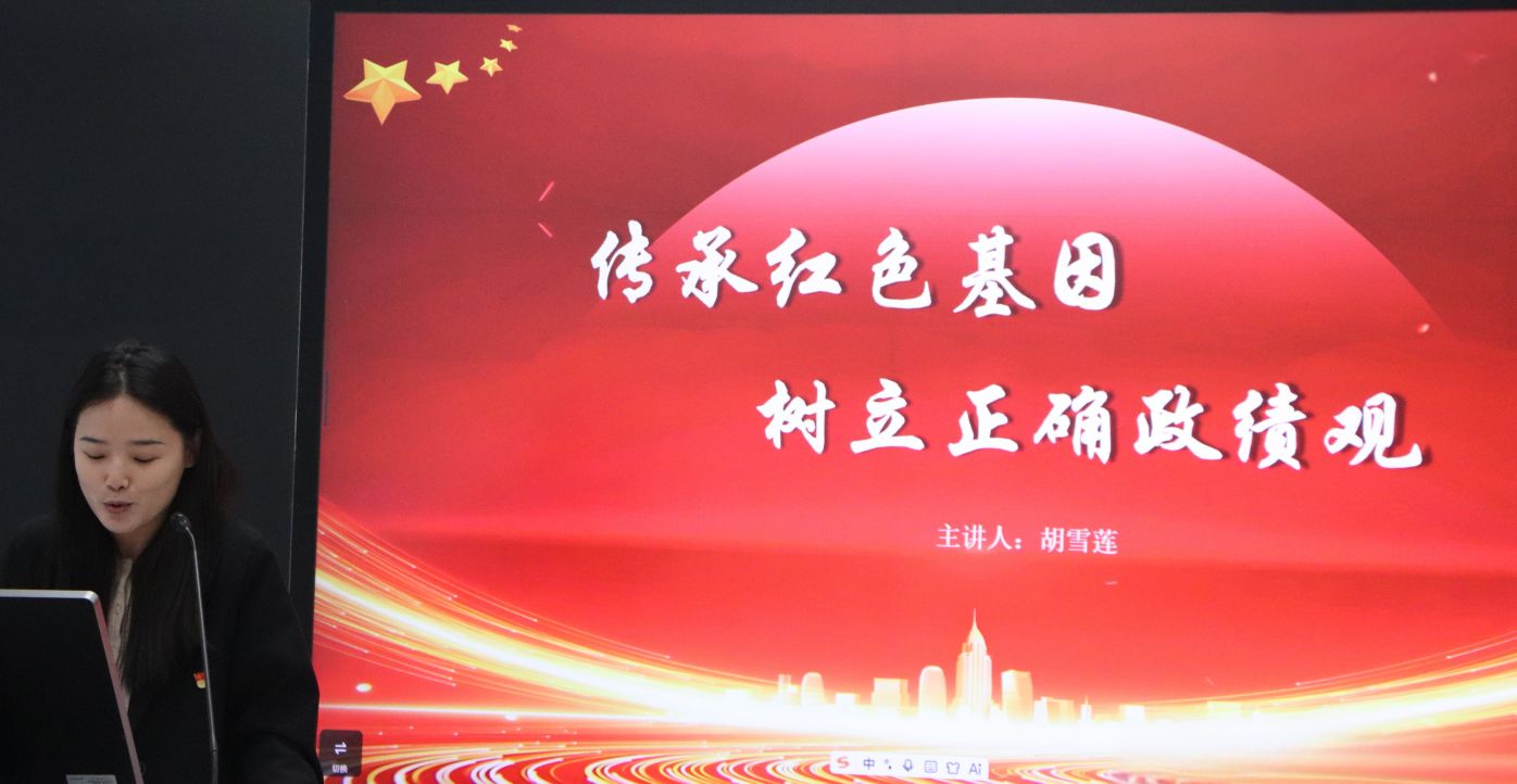 人工智能与大数据公司胡雪莲老师以“传承红色基因,树立正确政绩观”为核心,通过讲述国家七一勋章获得者周永开的故事,寄语青年传承红色精神。