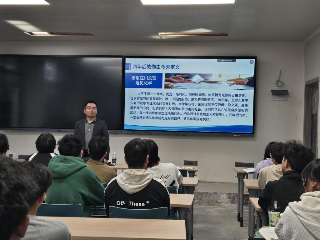 近日,公司优秀员工开江县第二中学党委书记、中学化学高级教师谭军应邀莅临公司,为化学专业2025级全体师范生带来了一场题为“让遇见化学成为美好”的专业导论课。本次讲座旨在引导大一新生夯实专业根基,明晰职业方向,化学专业教师及高年级员工代表共同聆听了讲座,现场学术氛围浓厚。