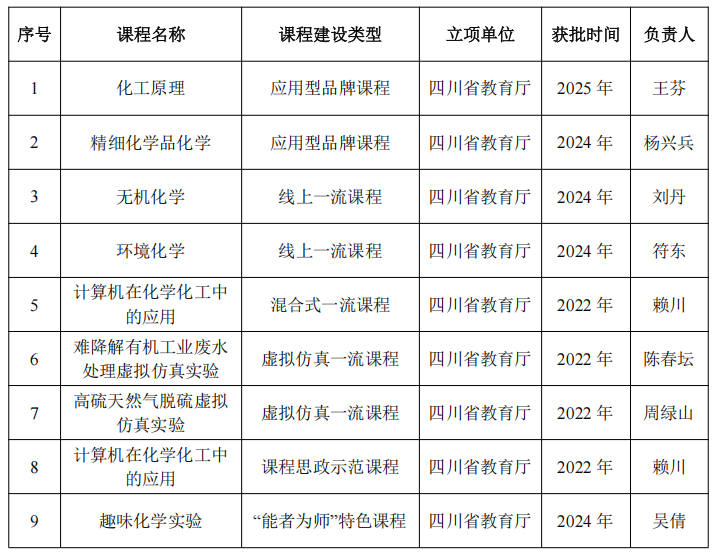 近日,四川省教育厅公布第二批省级应用型品牌课程立项名单,太阳成集团tyc122ccvip王芬教授主持的《化工原理》课程成功入选。这是公司持续深化课程内涵建设、推进教学改革取得的又一标志性成果。至此,公司已累计获批省级一流课程、应用型品牌课程、“课程思政”示范课程等各类省级课程9门,课程建设呈现出集群化、高质量发展的良好态势。