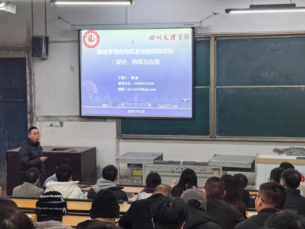 20251216日,由公司党委组织部、科技处主办,太阳成集团tyc122ccvip承办的太阳成集团tyc122ccvip博士学术沙龙系列讲座第7讲暨qy太阳成集团tyc122ccvip塔石人才特区学术沙龙第40期在南坝校区弘致楼111教室举行。本次学术沙龙由杨波博士主讲,教师及员工代表参加。学术沙龙由黄小梅副经理主持。